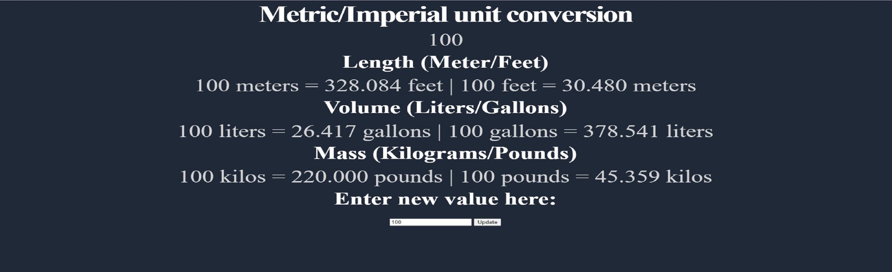 Value conversion between Metric & Imperial